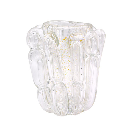Limited edition art glass vase by Martin Postch. Clear class with gold dust inclusions. Etched signature on the bottom.