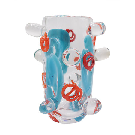 Limited edition art glass vase by Martin Postch. Clear glass with clear glass prunts and orange applied swirls. Etched signature on the bottom.
