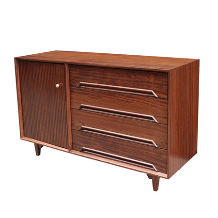 A small credenza designed by Milo Baughman for the Drexel Perspective line. Mahogany. Featuring original stamp & label.
