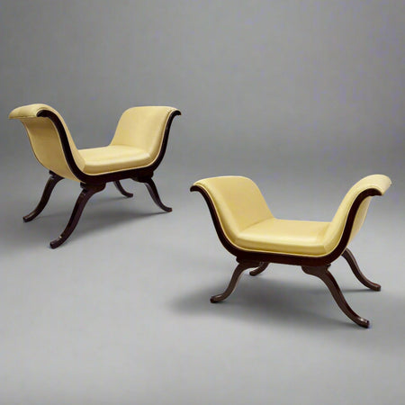Pair French Belle Epoque Period Mahogany Benches France circa 1890