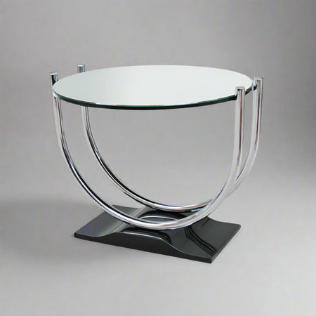 French Art Deco Round Chrome Black Side Table 1930