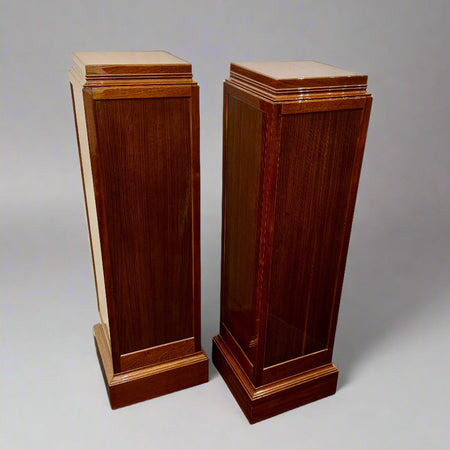 A pair of Art Deco pedestals. Beautiful veneer with carved profile details.