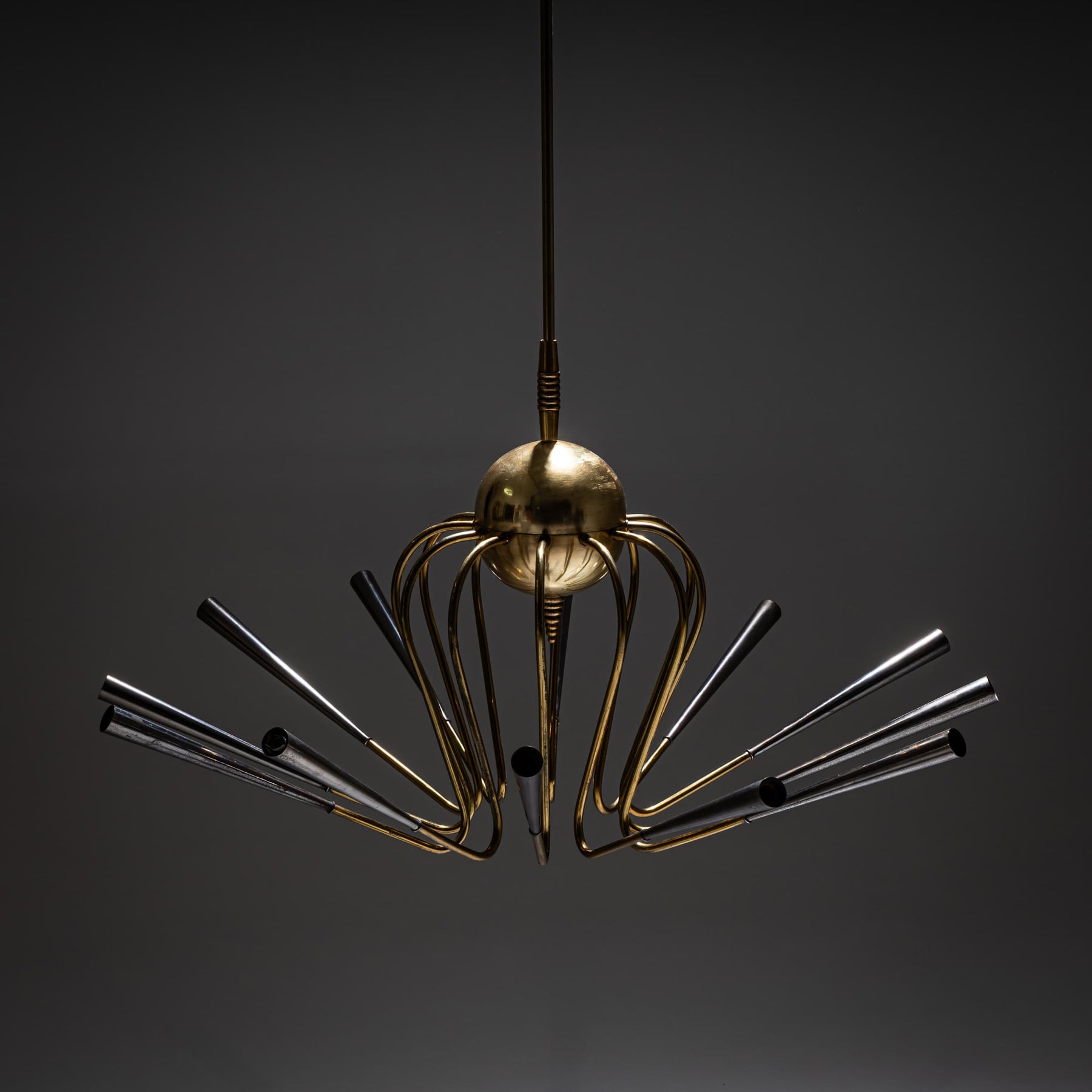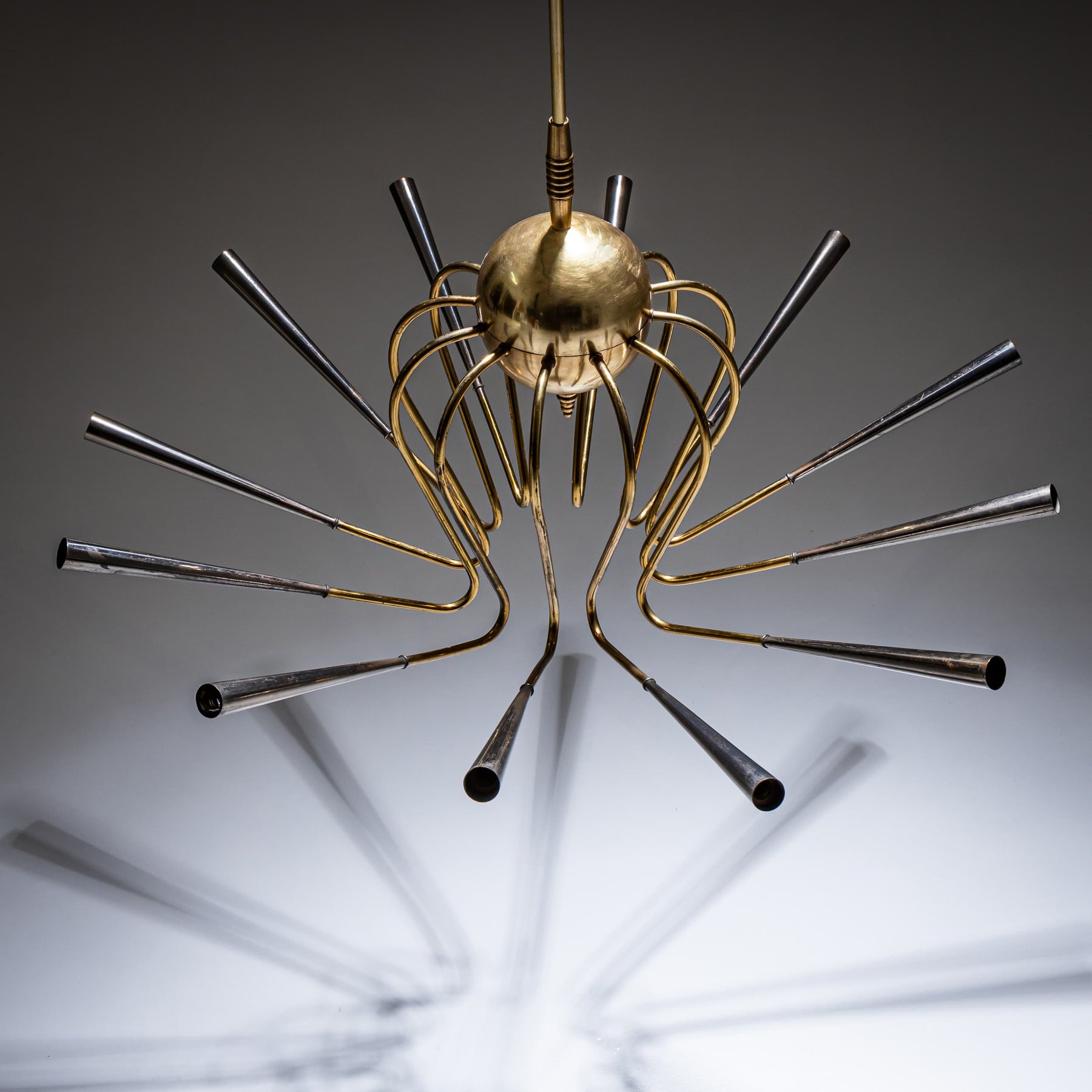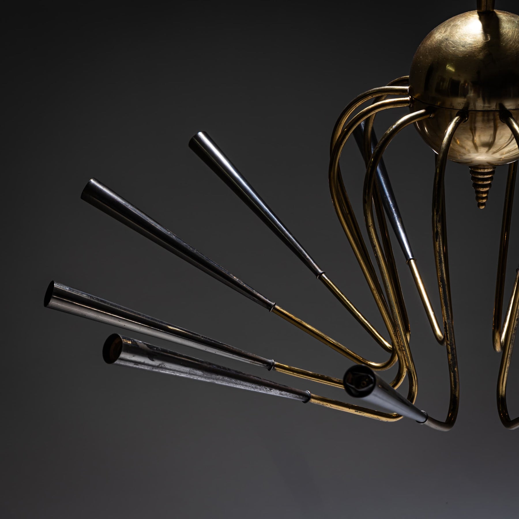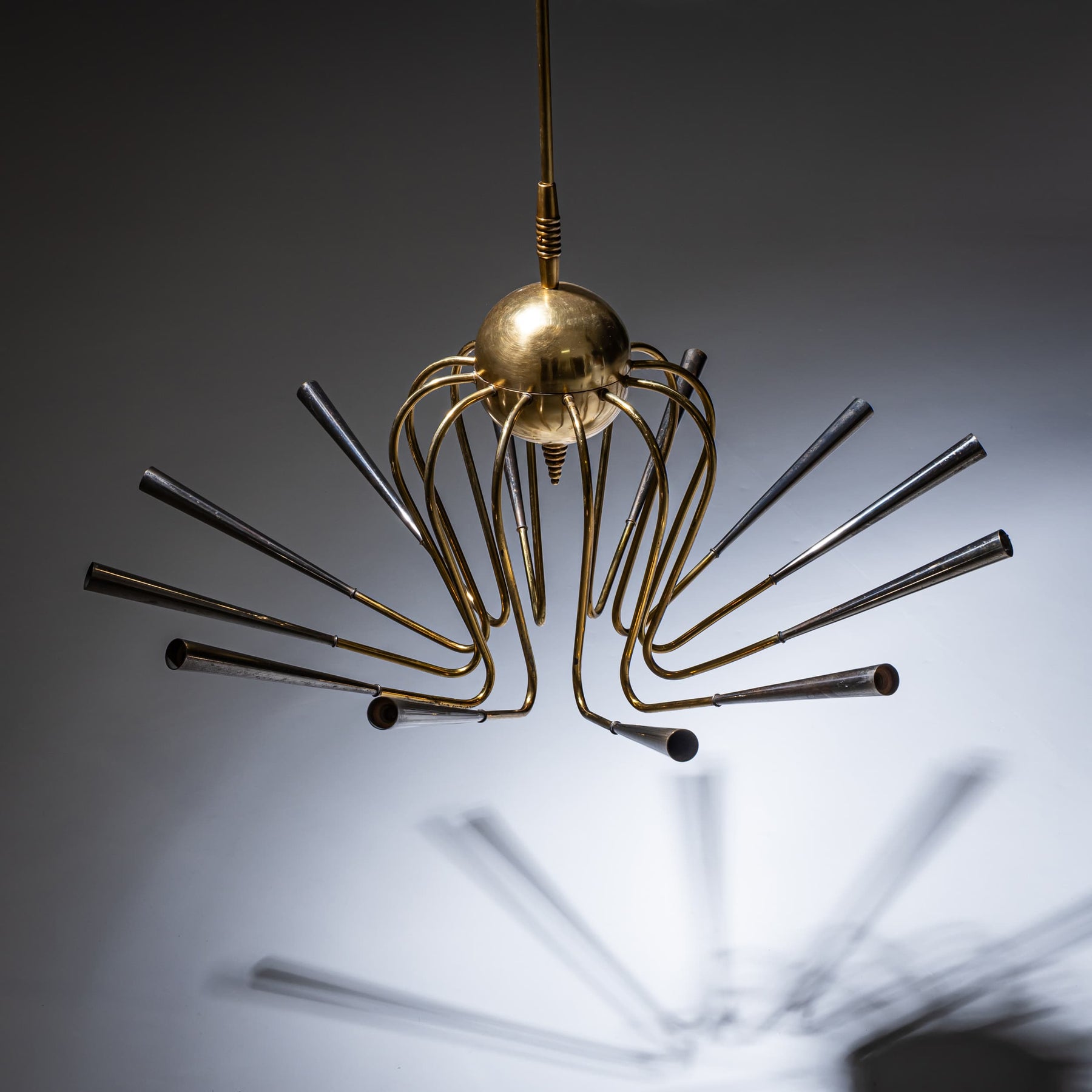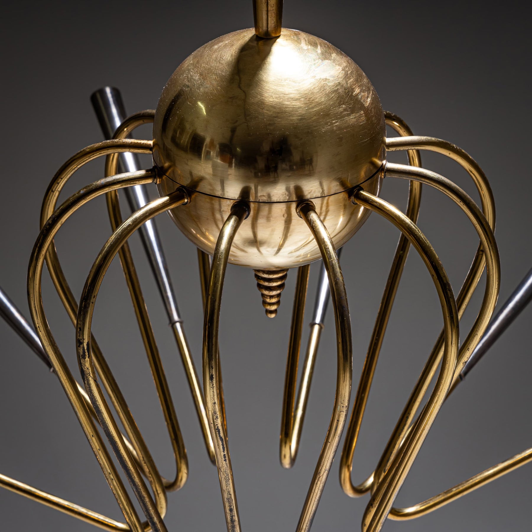 Sputnik Brass Chandelier, Italy, Mid-20th Century