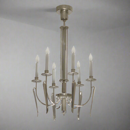 A handsome Art Deco period eight arm nickel chandelier from Germany circa 1930.