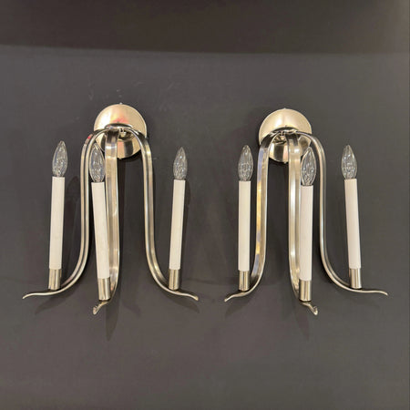 A pair of Art Deco period three arm sconces from Germany circa 1930.