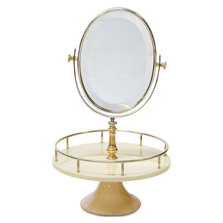 Aldo Tura Modernist Parchment Table Mirror. Lacquered goatskin with brass details.