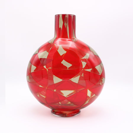 'Intariso' Italian Art Glass vase by Ercole Barovier. Made by Barovier & Toso. Clear,red and grey glass fused with triangular platelets. Literature: Venetian Art Glass, An American Collection 1840-1970 Marino Barovier, 2004 Arnoldsche . Pages 166,167