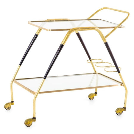 Italian Modernist two tier bar cart attributed to Cesare Lacca. Brass , glass , and wood details.