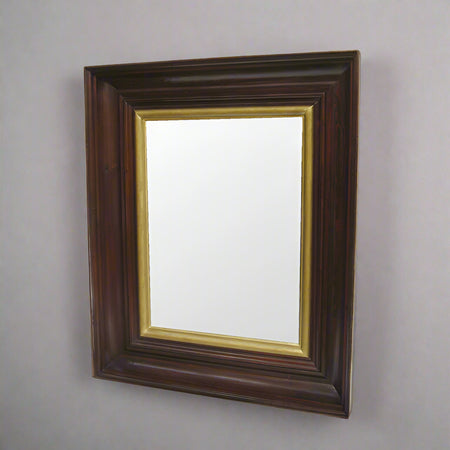 A large scale Modernist mirror in stained oak with an inner giltwood molding from France circa 1940.