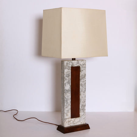 A Modernist style rectangular table lamp of marble with walnut details from Italy circa 1950.