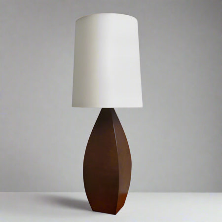An Italian Modernist table lamp circa 1950. The asymmetric mahogany timber base has sloped sides and is of impressive scale.