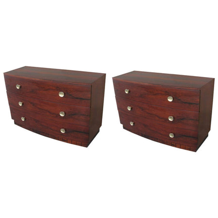 A pair of Modernist bow-front chests designed by Gilbert Rohde.