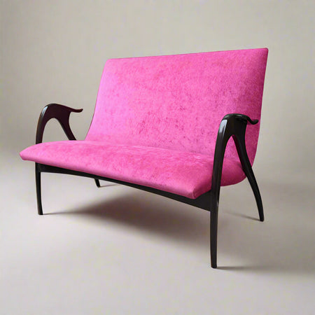 Sculptural Italian Mid-Century setee by Malatesta and Mason. Stained Beechwood.