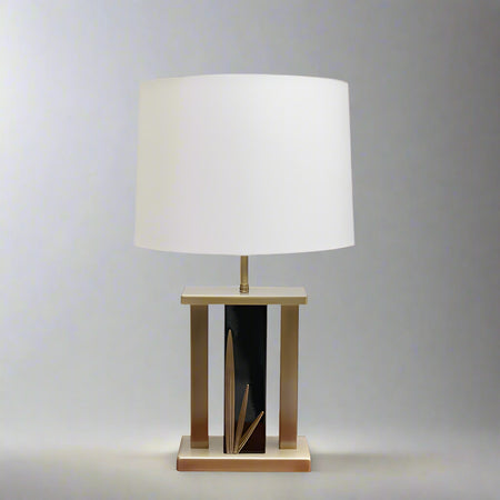 Single Italian Modernist table lamp. Brass and enamelled metal.
