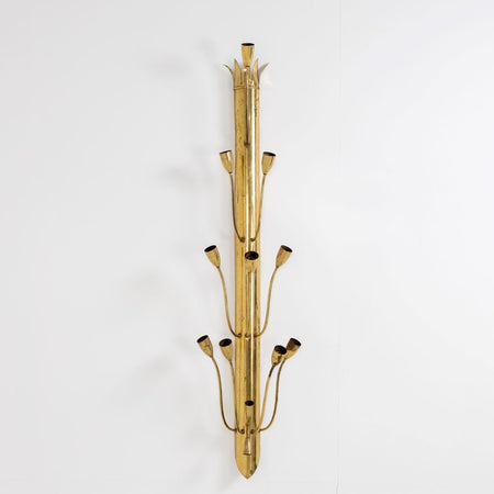 Single Large Twelve Light Brass Wall Sconce
