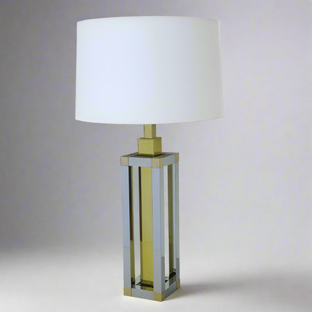 A Modernist Table lamp designed by Stephane Davidts. Geometric form in patinated brass and chrome.