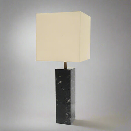 A Von Nessen designed Modernist black marble column table lamp from USA circa 1950.