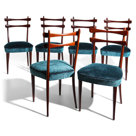 Set of Six Italian Mid-Century Dining Chairs attributed to Vittorio Dassi. Stained Beechwood. Completely reupholstered.