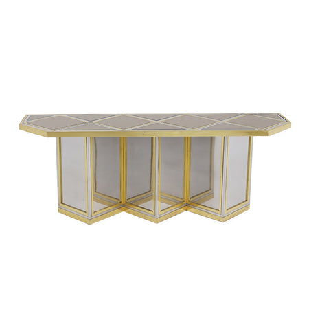 Italian Modernist console table attributed to Sandro Petti. Patinated brass and mirrored glass.