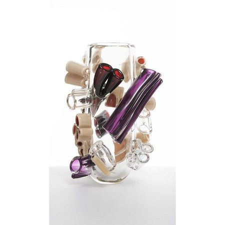 A Martin Potsch art Glass vase Clear vase with multi colored tubular prunts in purple, cream and clear.