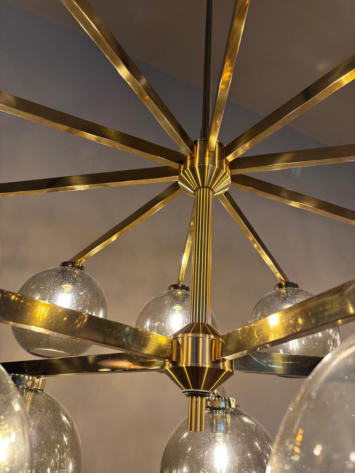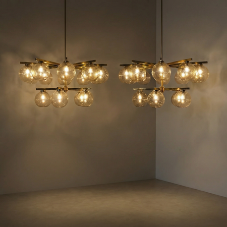 Pair of large Brass and Glass Globes Chandeliers by Hans-Agne Jacobson, Sweden, 1960s