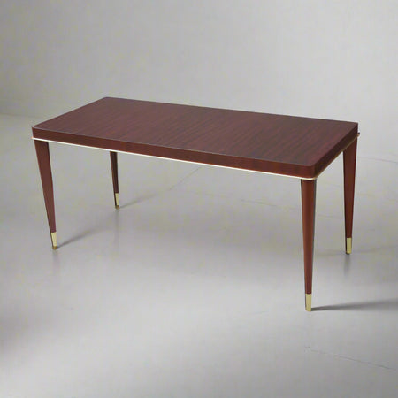 A De Coene Fréres designed Art Deco coffee table. Mahogany with patinated bronze details. Featuring the original De Coene Label.