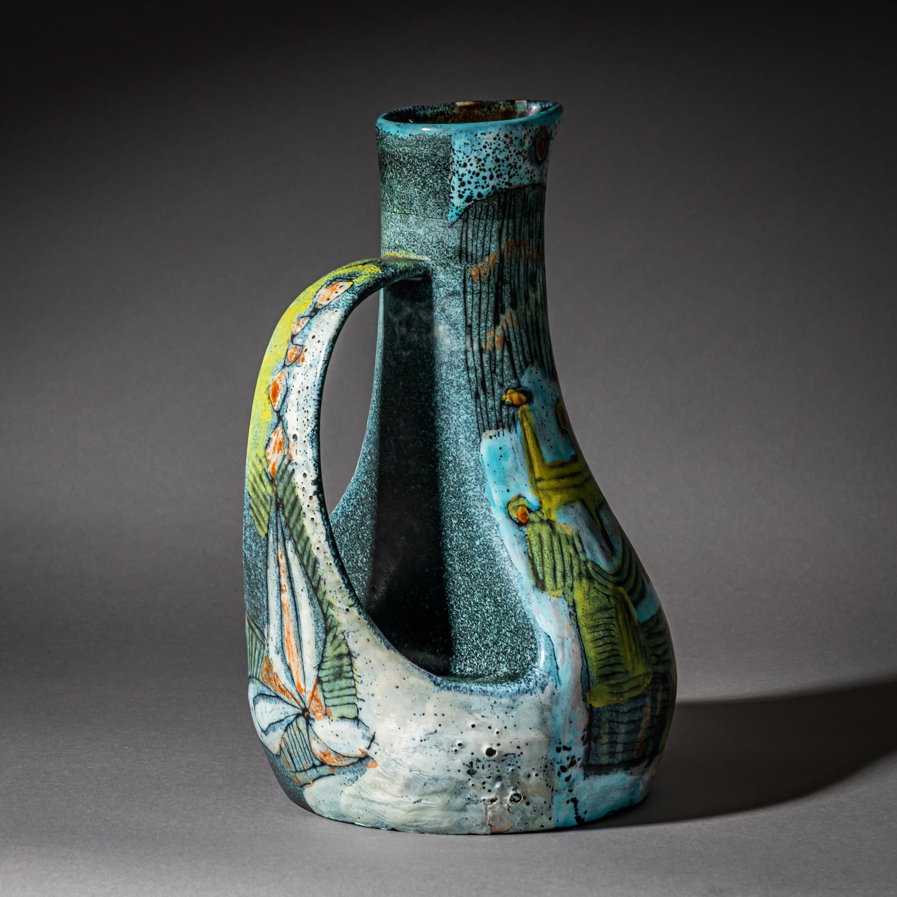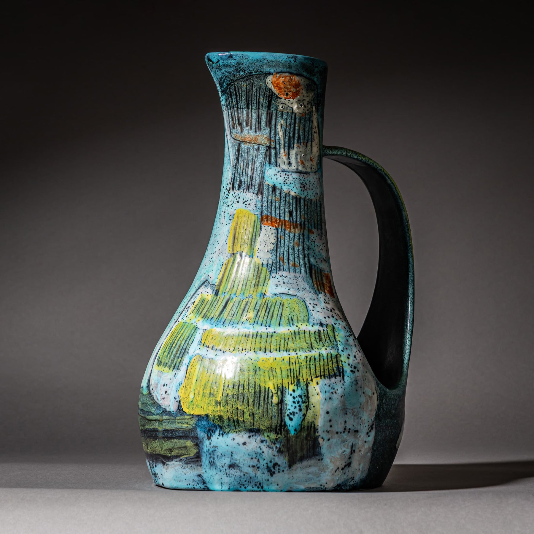 Color-Glazed Ceramic Jug by Bruno Baratti Pesaro, Italy, Mid-20th Century