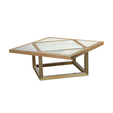 An Italian Modernist Cocktail table. Geometric design in brass with aged mirror glass segmented top.