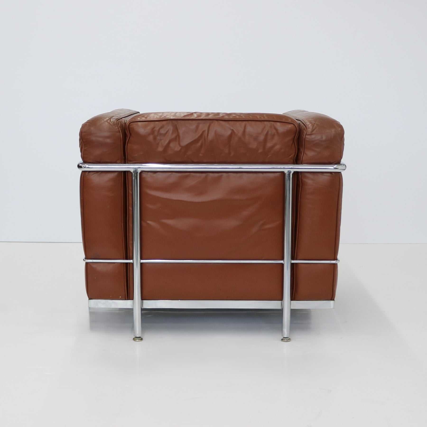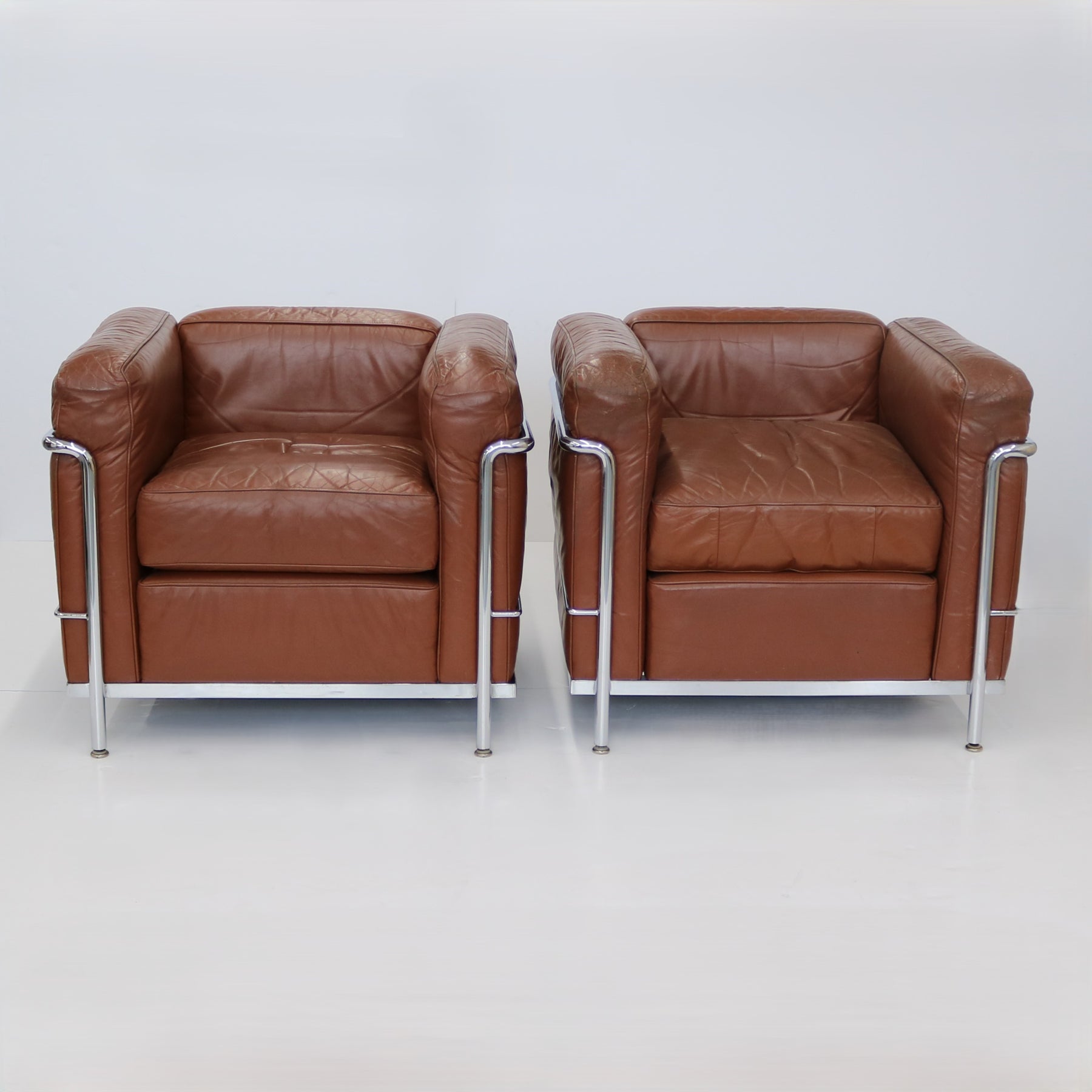 Pair of vintage LC2 Corbusier armchairs. Original leather and chrome frame.