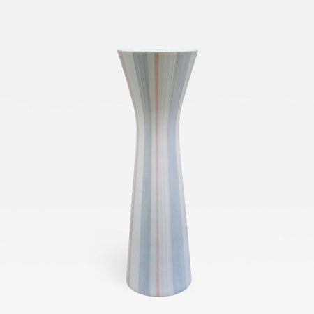 Impressive Rosenthal porcelain floor vase having vertical ribs and painted pale grey and pink stripes. The Rosenthal label appears on the underside.
