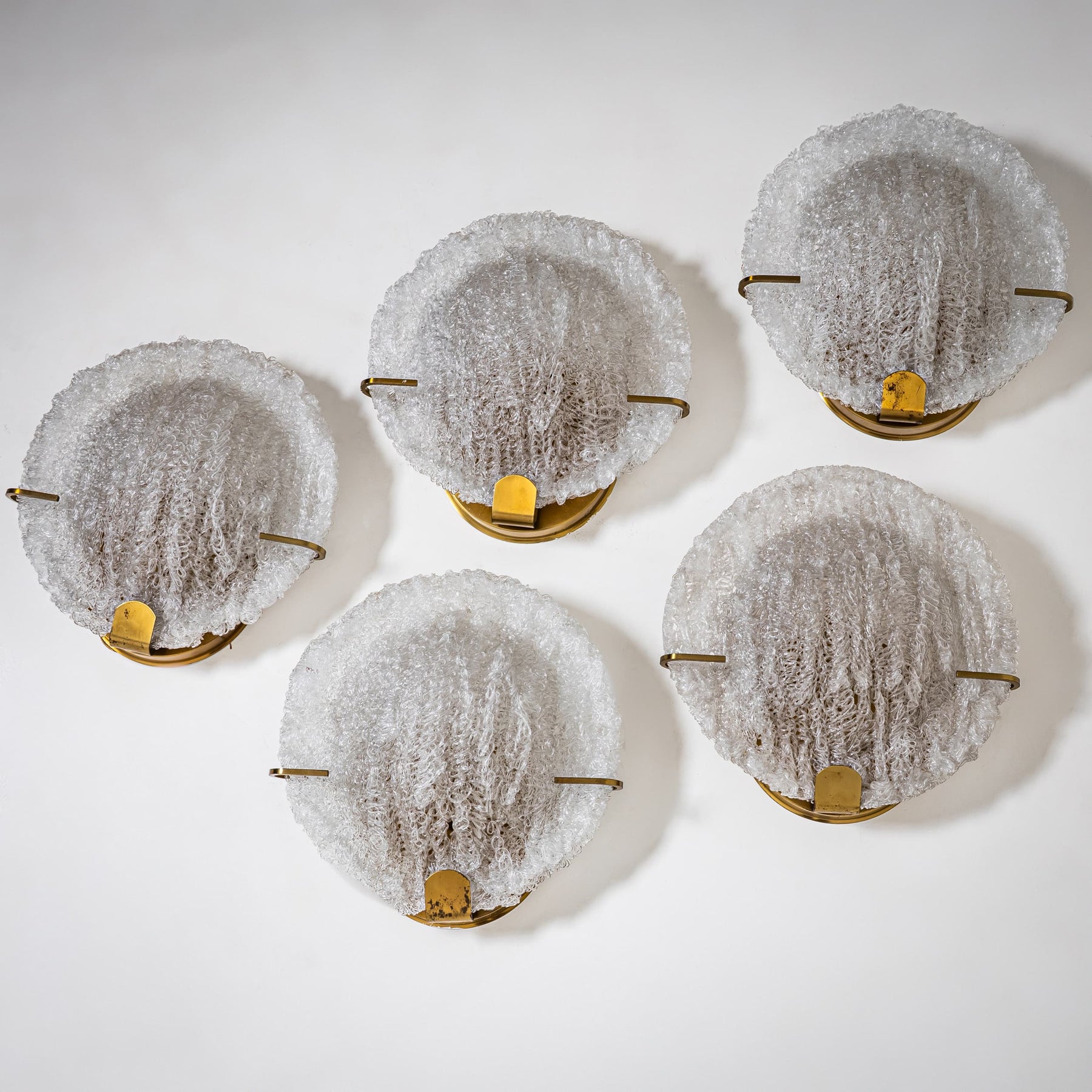 Set of Five Wall Lights with Glass Shades, Italy, Mid-20th Century
